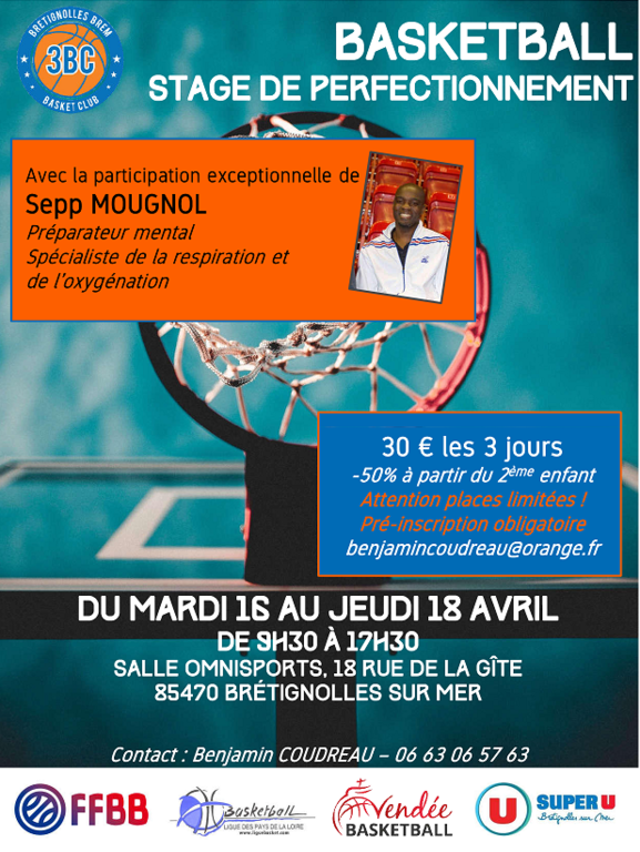 Pendant les vacances de Pâques, le club organise un stage du mardi 16 au jeudi 18 avril.