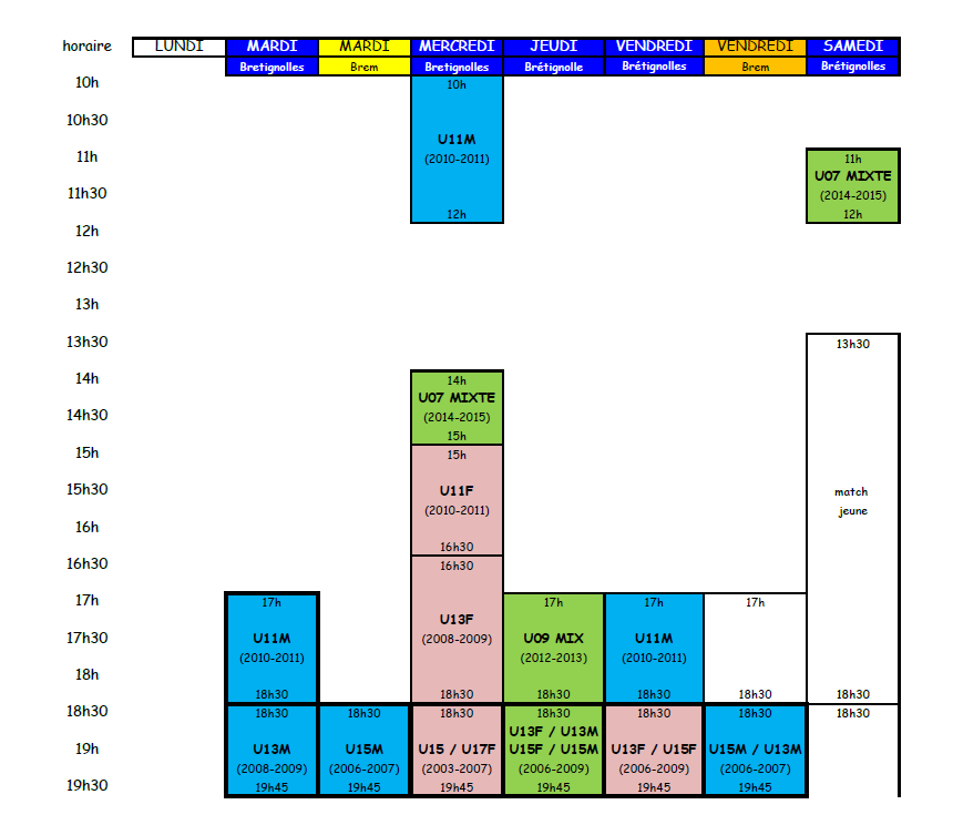 Horaire des entrainements jeunes à partir du 5 janvier jusqu'à la fin du couvre-feu